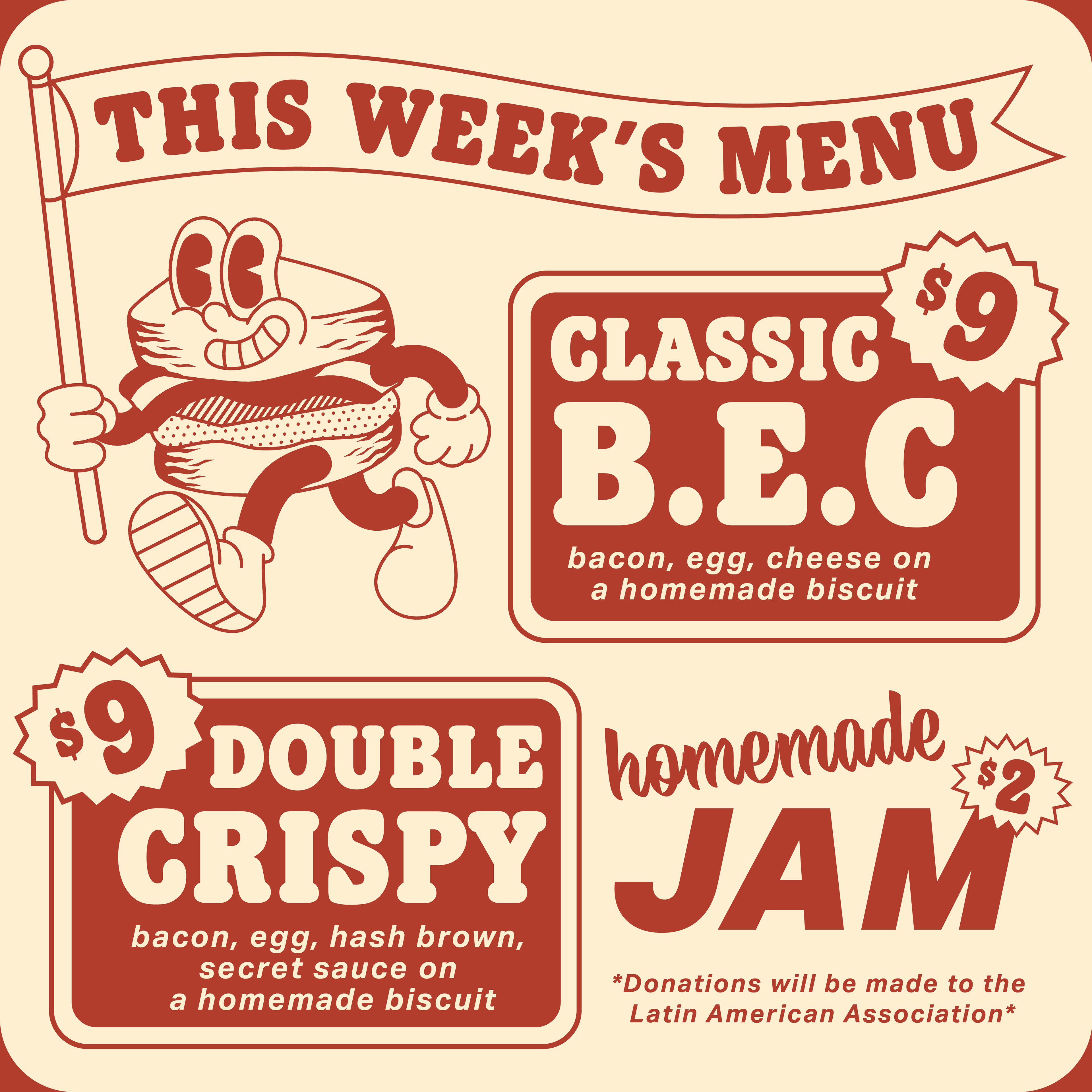 For this project I designed a logo and reusable menu for Breakfast Car, a local biscuit delivery service in Atlanta that focuses on bringing food to the community, and donates a majority of the profits to local organizations and mutual aid.
