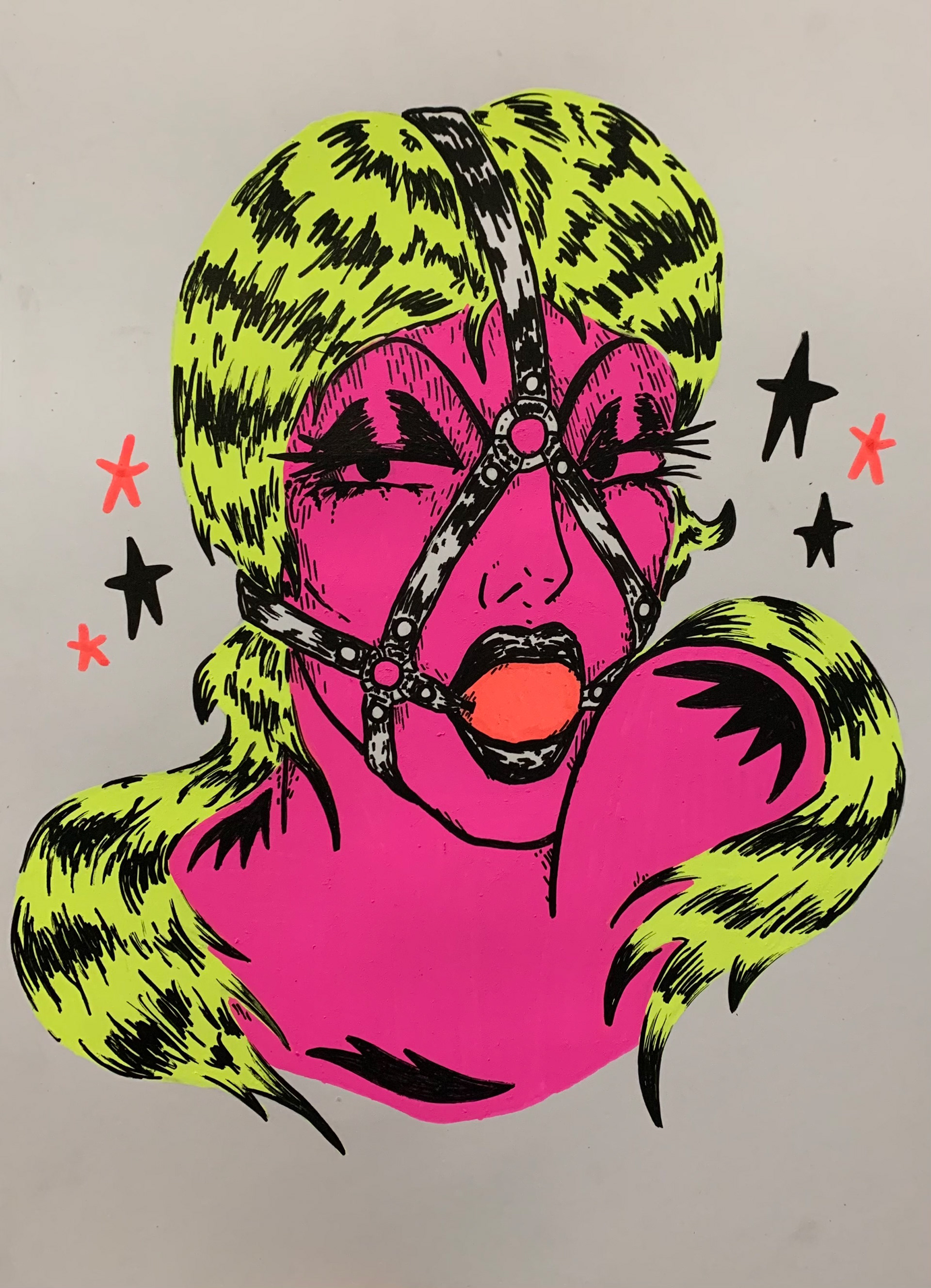 “GAGGED” (2023) using ink pens and POSCA paint markers
